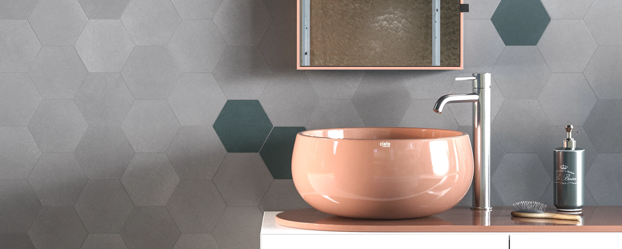 The hexagon is an original decorative figure, making our tiles a timeless choice for the design of your bathroom. These pieces not only enhance the aesthetic appeal but also provide durability and easy maintenance, essential qualities for any interior space.